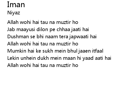 | Allah wohi hai tau na muztir ho | |