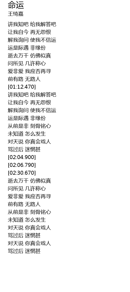 | [01:26.690] | 解我询问 使我不信运 |