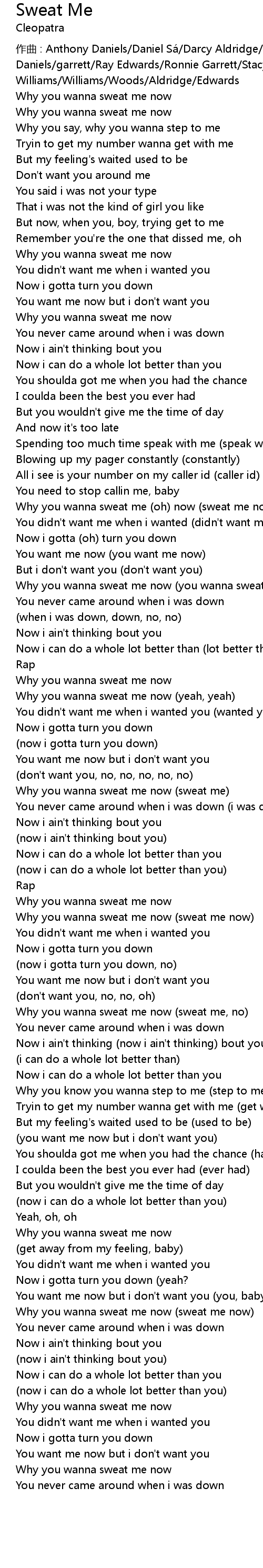 | Why you wanna sweat me now (sweat me) | |