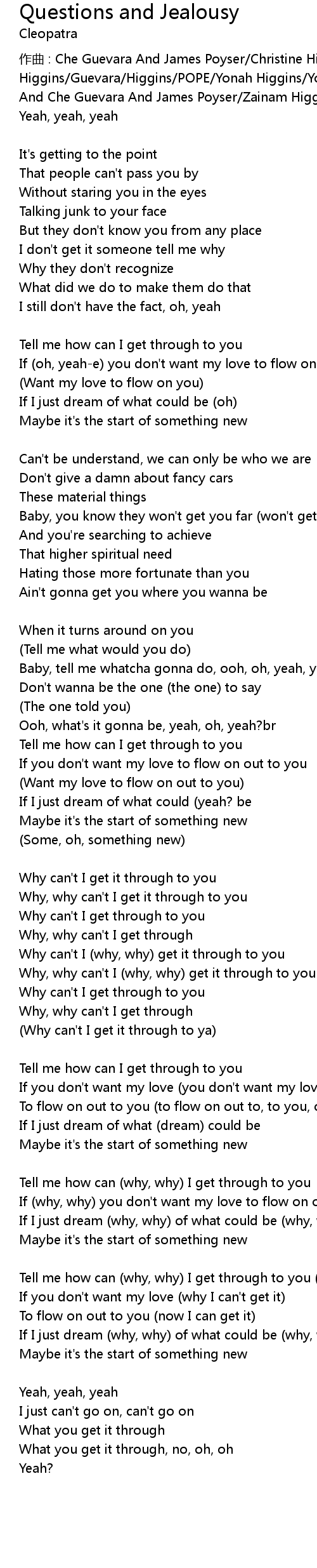 | 歌曲 | Questions and Jealousy |