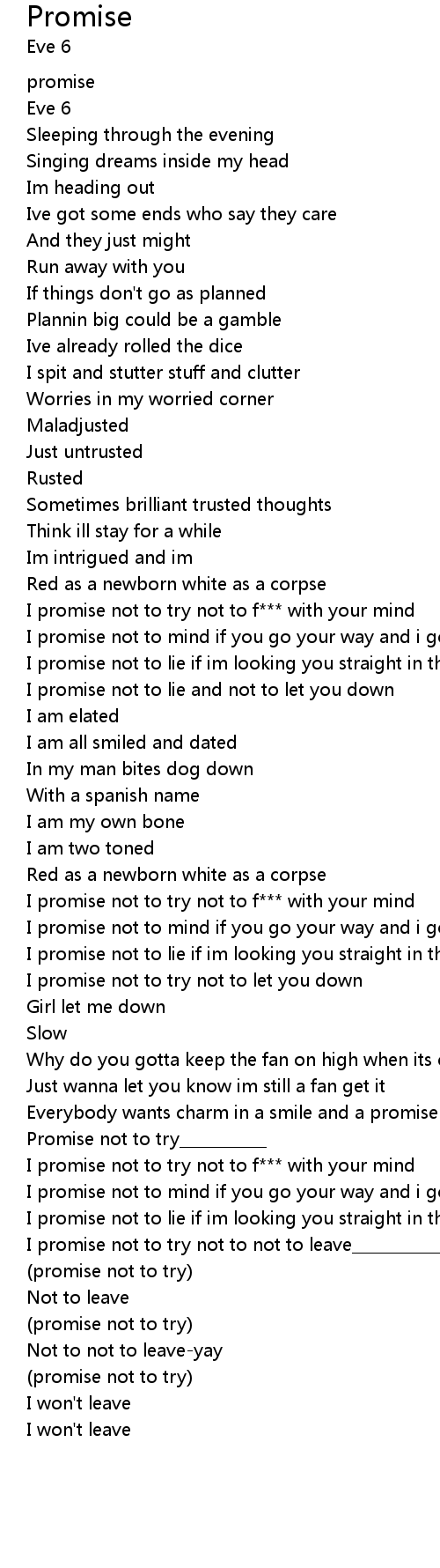 I promise not to lie and not to let you down |