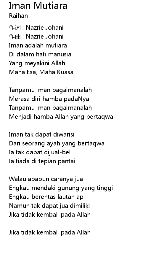 | 歌曲 | Iman Mutiara |