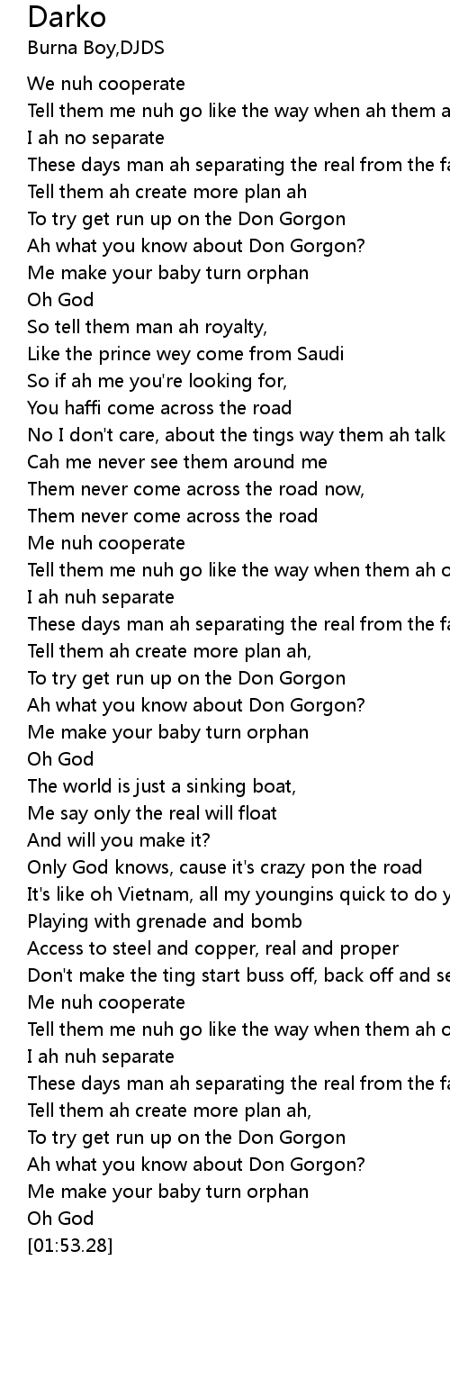 | [00:23.25] | To try get run up on the Don Gorgon |