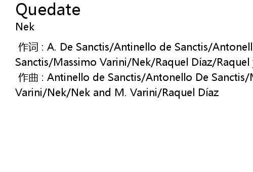 | [00:00.000] | 作词 : A. De Sanctis/Antinello de Sanctis/Antonello De Sanctis/Massimo Varini/Nek/Raquel Díaz/Raquel y Nuria Diaz |