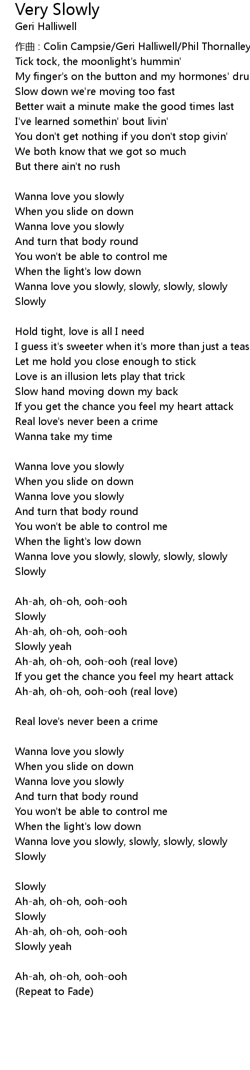 | Wanna love you slowly, slowly, slowly, slowly | |