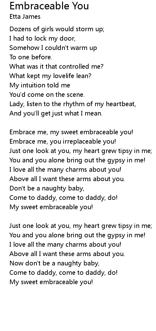 Embrace me, my sweet embraceable you!