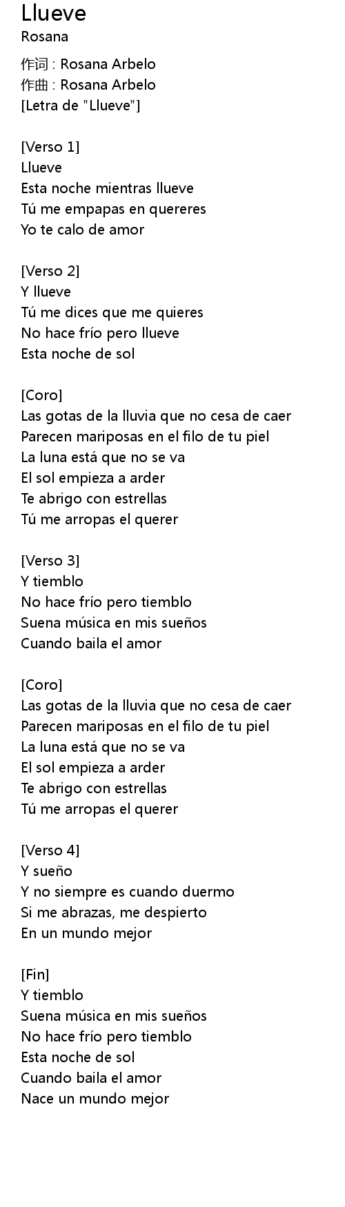 | [Letra de "Llueve"] | |