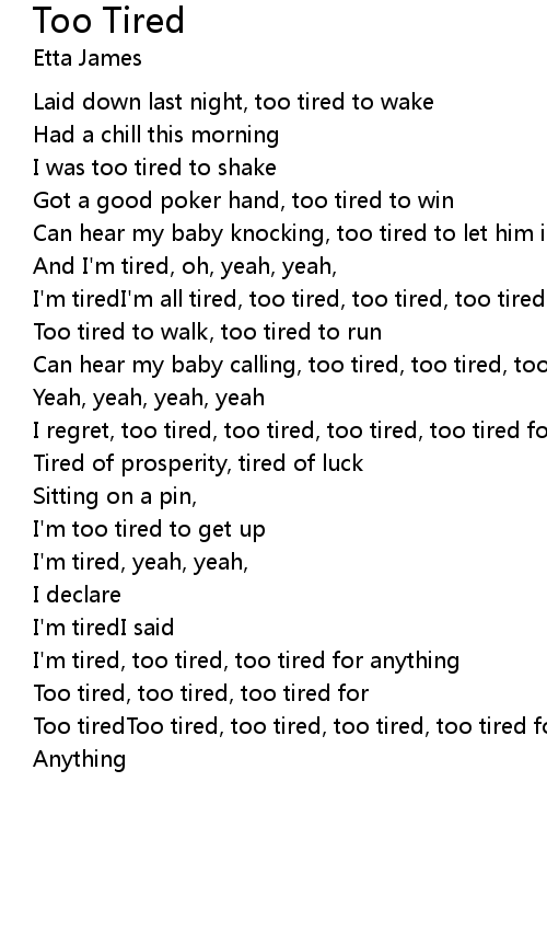 Too tiredToo tired, too tired, too tired, too tired for anything |