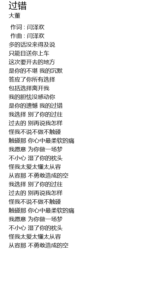 | [00:54.000] | 是你的遗憾 我的过错 |