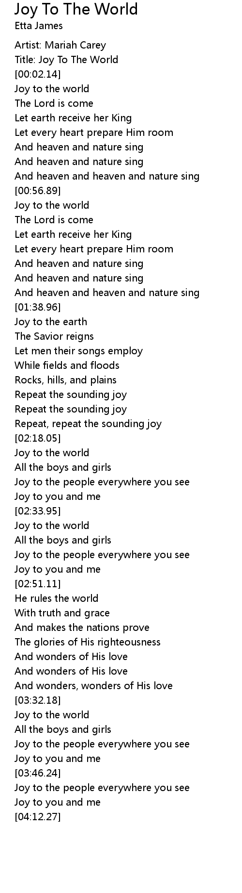 Title: Joy To The World |