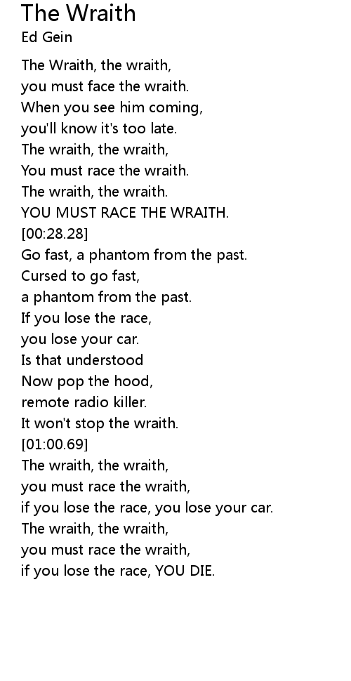 | [00:24.14] | YOU MUST RACE THE WRAITH. |