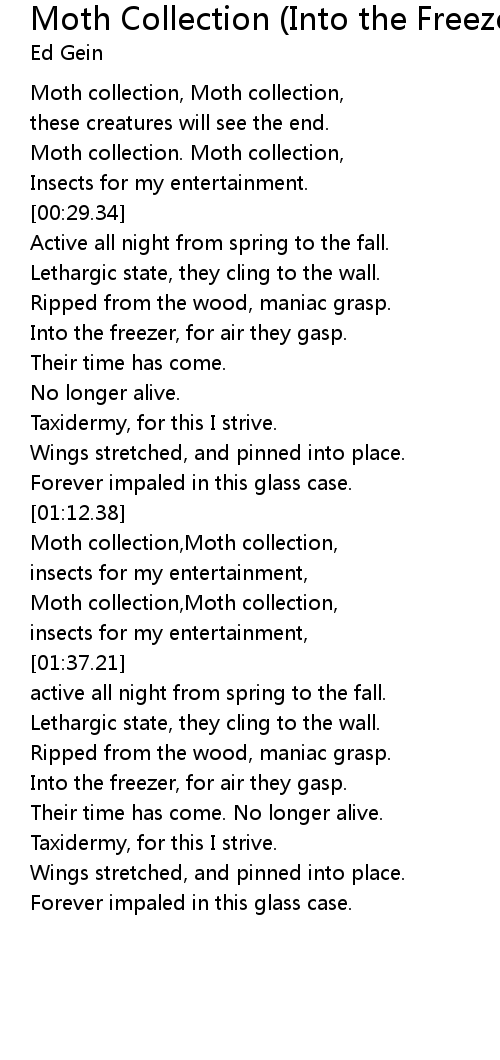 | [01:24.17] | Moth collection,Moth collection, |