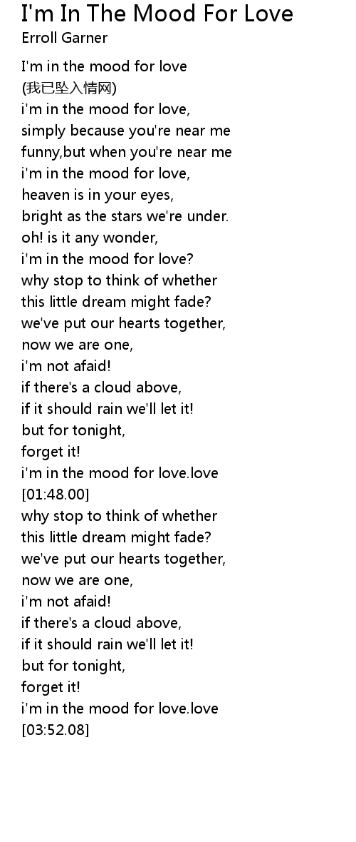 | [03:00.47] | i' m in the mood for love. love |