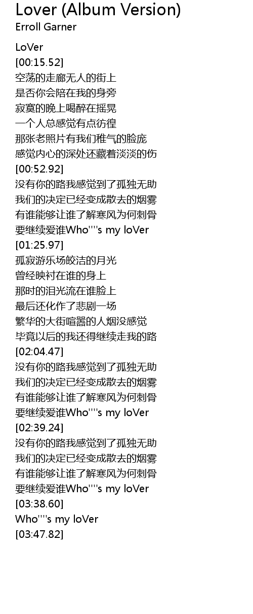 | [03:30.06] | yao ji xu ai shui Who'''' s my loVer |