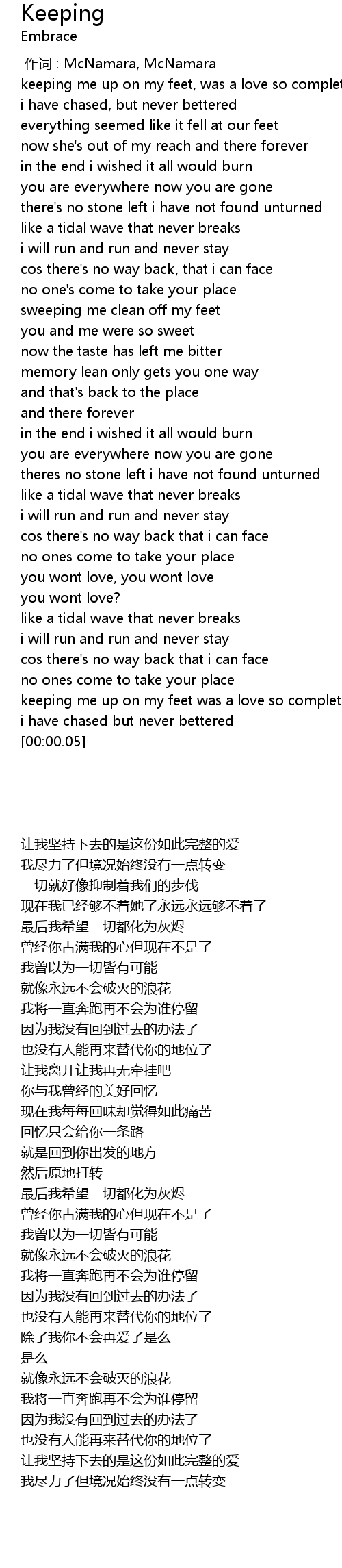 | 歌曲 | Keeping |