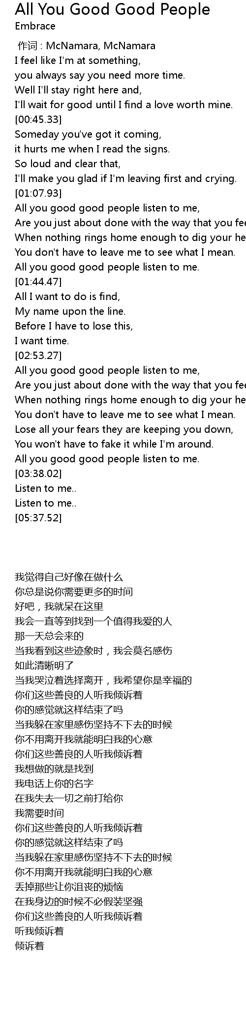| [02:56.43] | 你们这些善良的人听我倾诉着 |