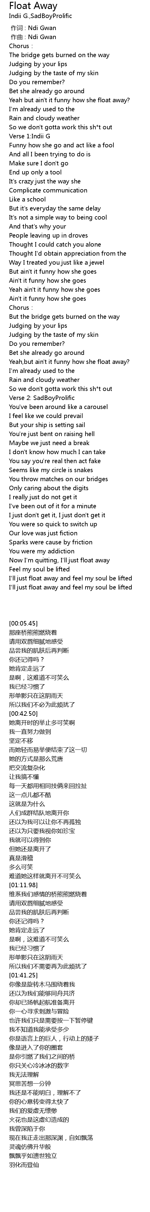 | [02:21.87] | I' ll just float away and feel my soul be lifted |