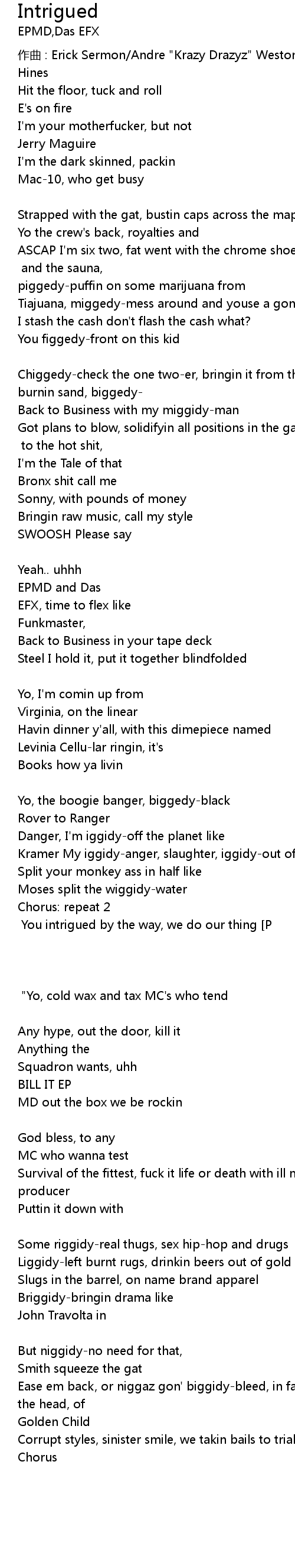 | 作曲 : Erick Sermon/Andre "Krazy Drazyz" Weston/Parrish Smith/Willie "Skoob" Hines | |