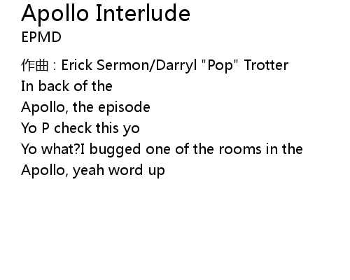 | 歌曲 | Apollo Interlude |