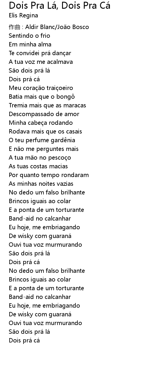 | 歌曲 | Dois Pra Lá, Dois Pra Cá |