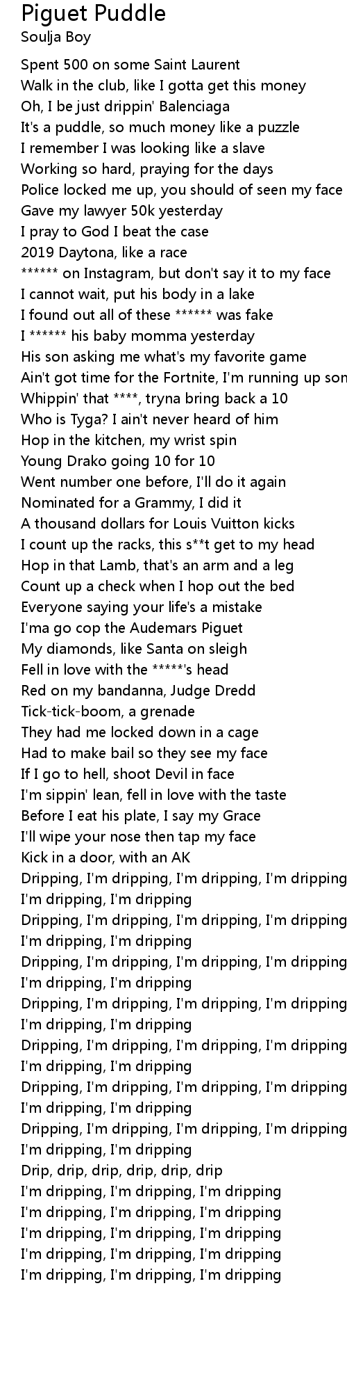 Dripping, I'm dripping, I'm dripping, I'm dripping, I'm dripping |