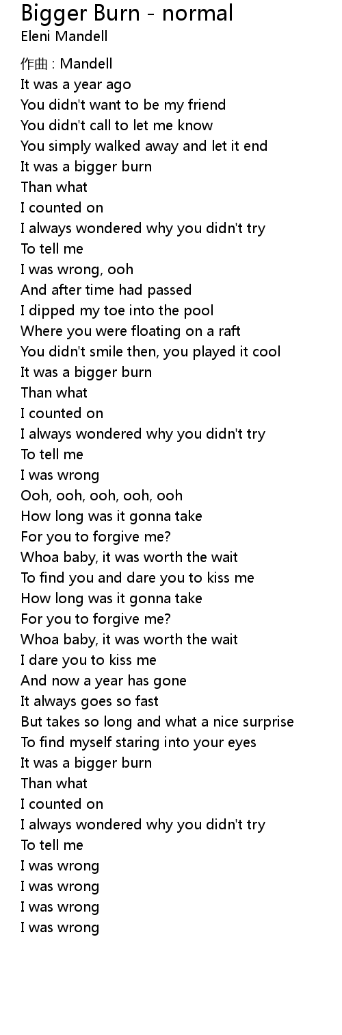 | 歌曲 | Bigger Burn - normal |