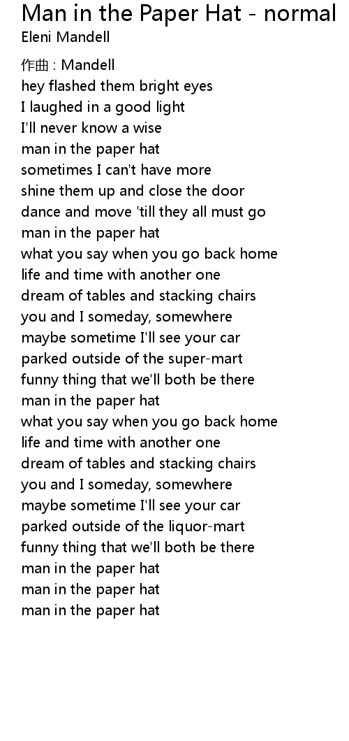 | 歌曲 | Man in the Paper Hat - normal |