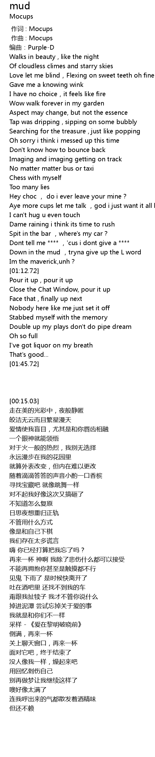 | [00:00.000] | 作词 : Mocups |