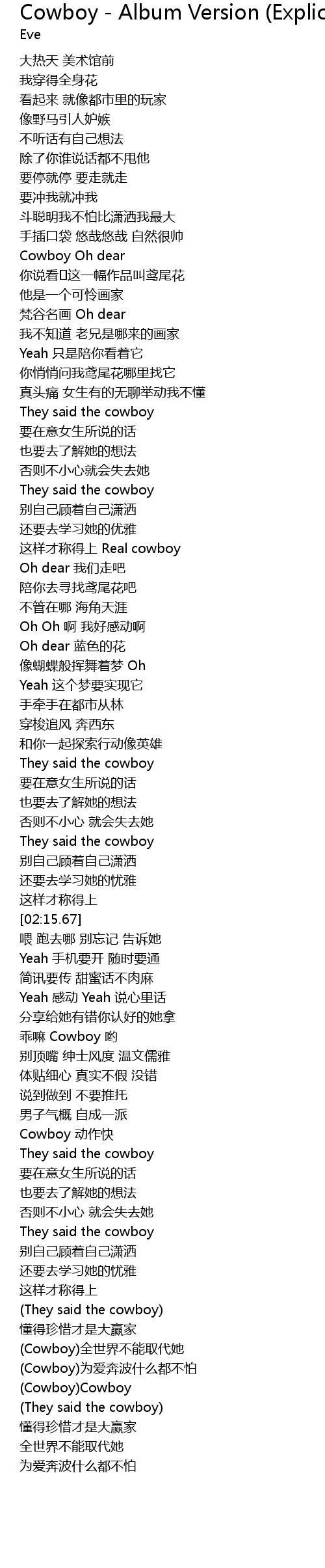 | [02:54.03] | Cowboy dòng zuò kuài |