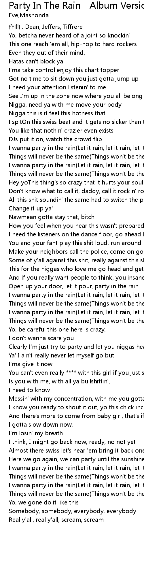 | I wanna party in the rain(Let it rain, let it rain, let it rain) | |