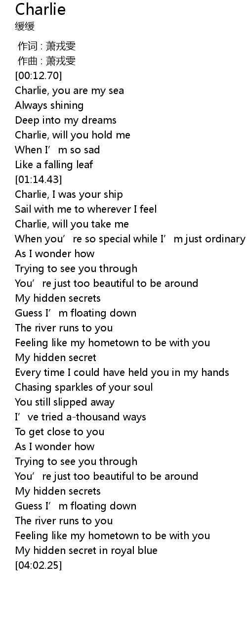 | [00:37.15] | Charlie, you are my sea |