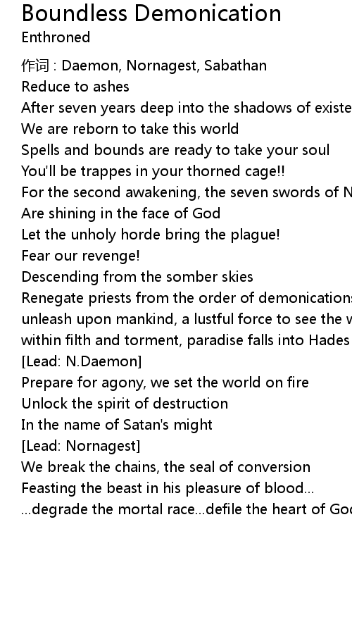| 歌曲 | Boundless Demonication |