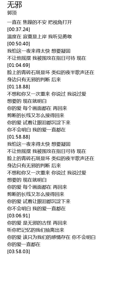 | [01:12.57] | 身边只有无邪的判断 后来 |