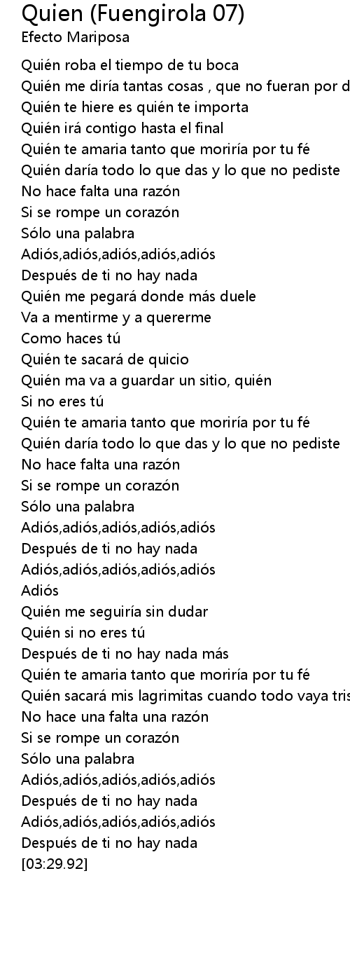 | [00:32.94] | Quié n darí a todo lo que das y lo que no pediste |