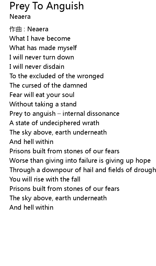| 歌曲 | Prey To Anguish |