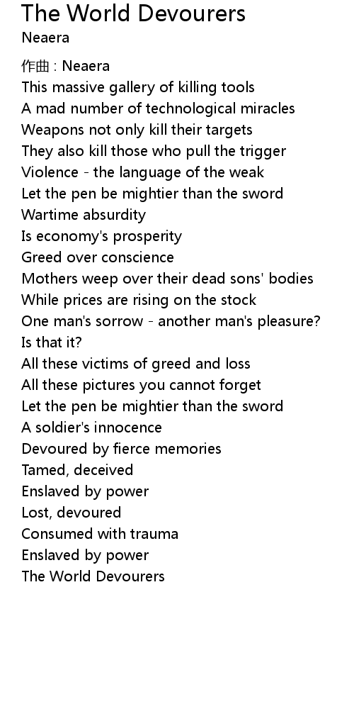 | 歌曲 | The World Devourers |