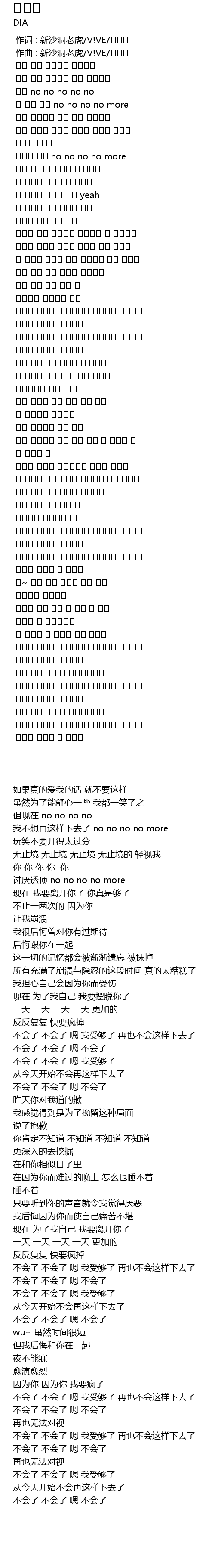 | [00:12.018] | 我不想再这样下去了 no no no no more |