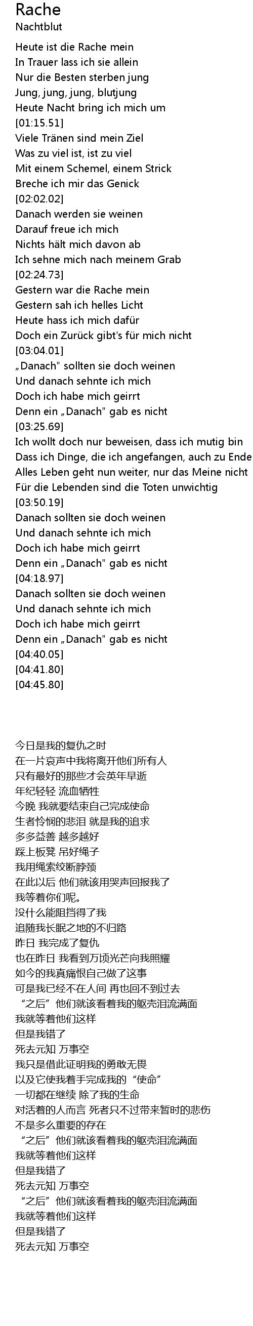 | [02:29.25] | Gestern war die Rache mein |