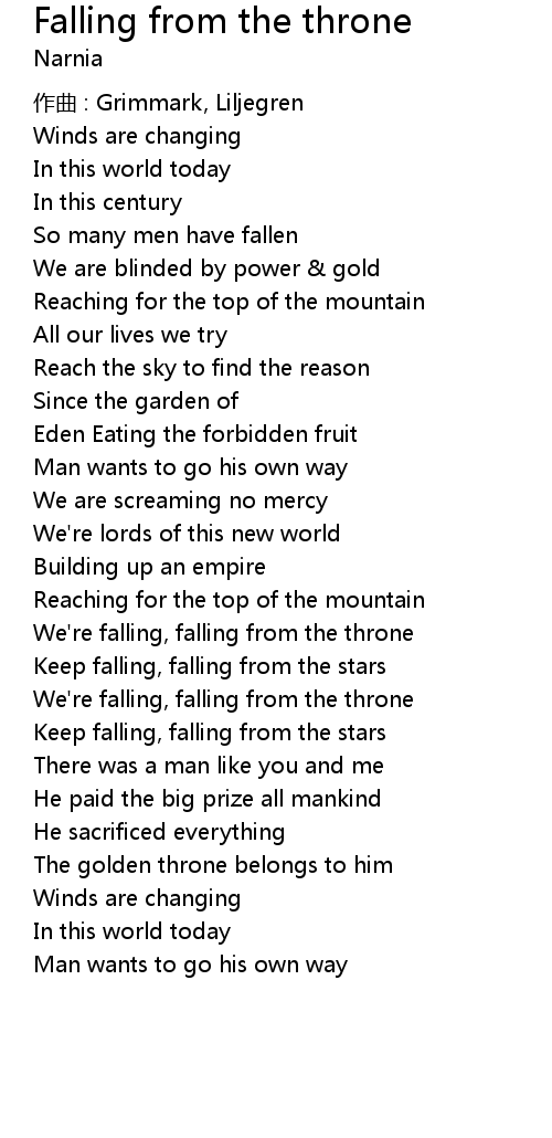 | 歌曲 | Falling from the throne |