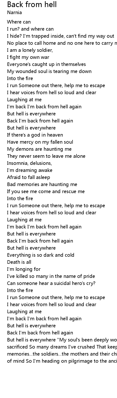 But hell is everywhere "My soul's been deeply wounded... So many lives I've sacrificed So many dreams I've crushed That keep hunting me every night... The memories...the soldiers...the mothers and their children... I need to find peace of mind So I'm heading on pilgrimage to the ancient city To restore my sanity" |