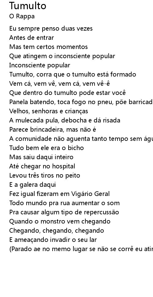 | Tumulto, corra que o tumulto está formado | |
