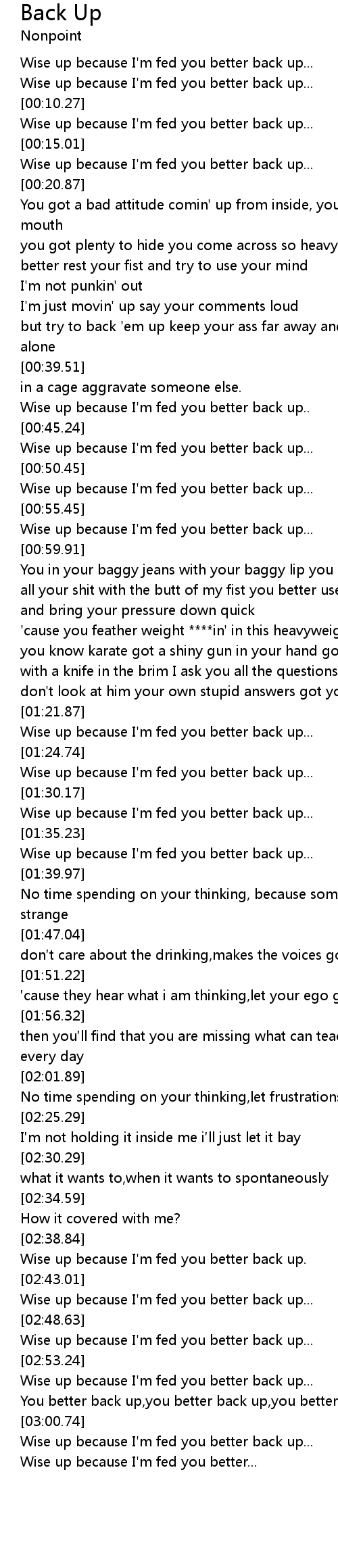 | [01:22.50] | Wise up because I' m fed you better back up... |