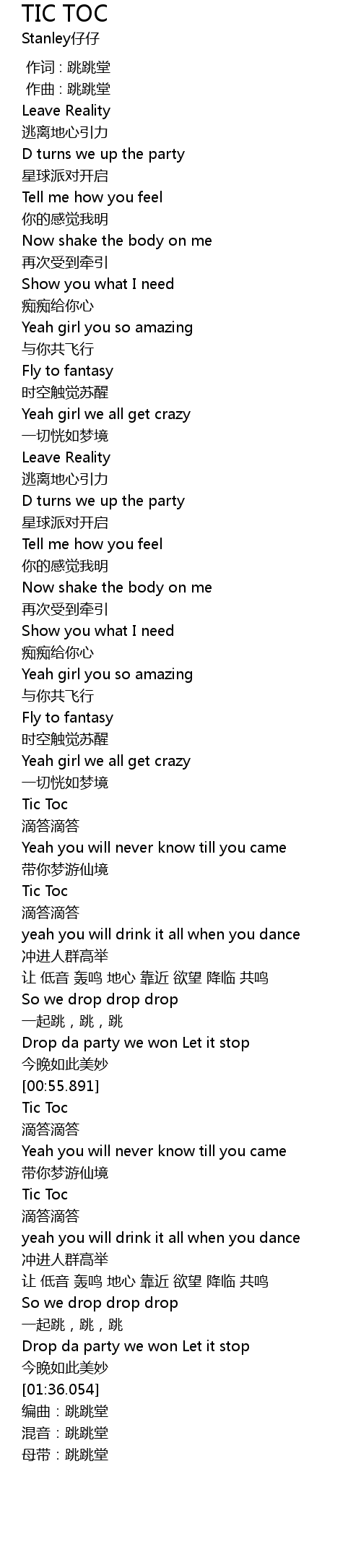 | [01:33.211] | yi qi tiao, tiao, tiao |