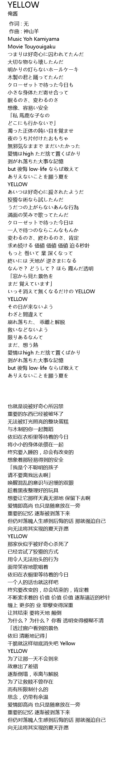 | [01:40.229] | 干脆就这样彻底消失吧 Yellow |