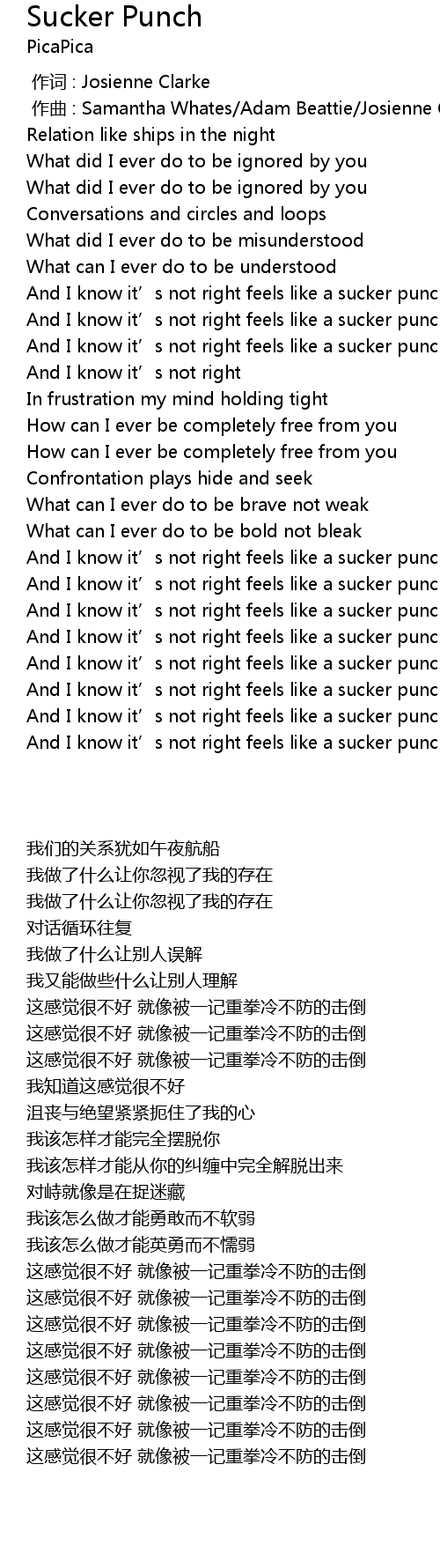 | [02:18] | And I know it' s not right feels like a sucker punch |