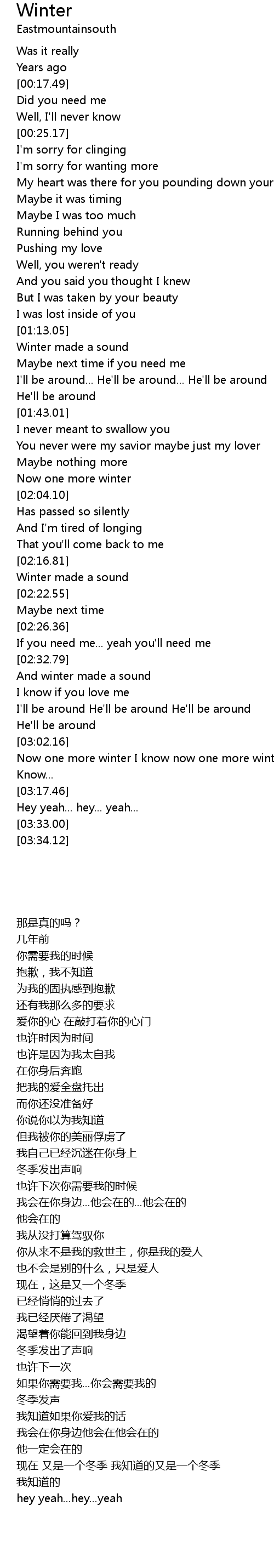 Now one more winter I know now one more winter I |