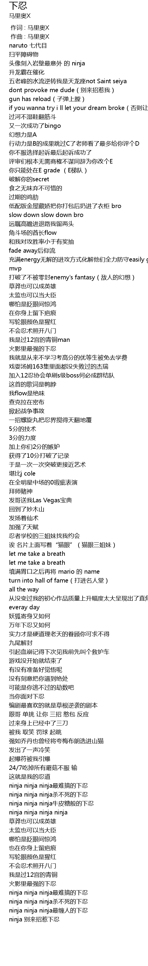 | [03:00.068] | ninja ninja ninja最难搞的下忍 |