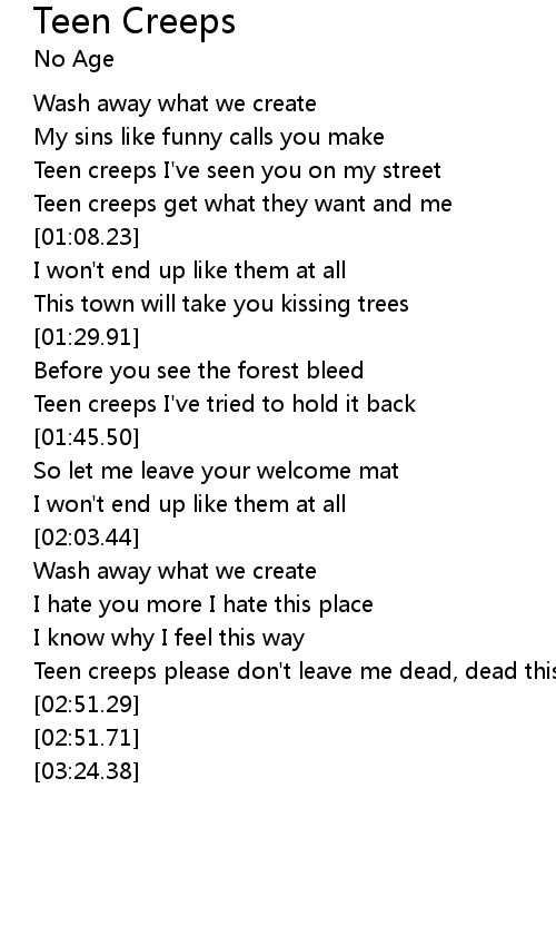 | [02:45.47] | Teen creeps please don't leave me dead, dead this way |