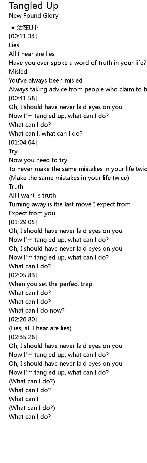 | [01:46.67] | Now I' m tangled up, what can I do? |
