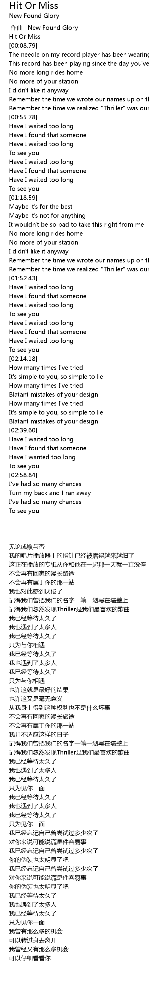 | [00:00.00] | zuò qǔ : New Found Glory |